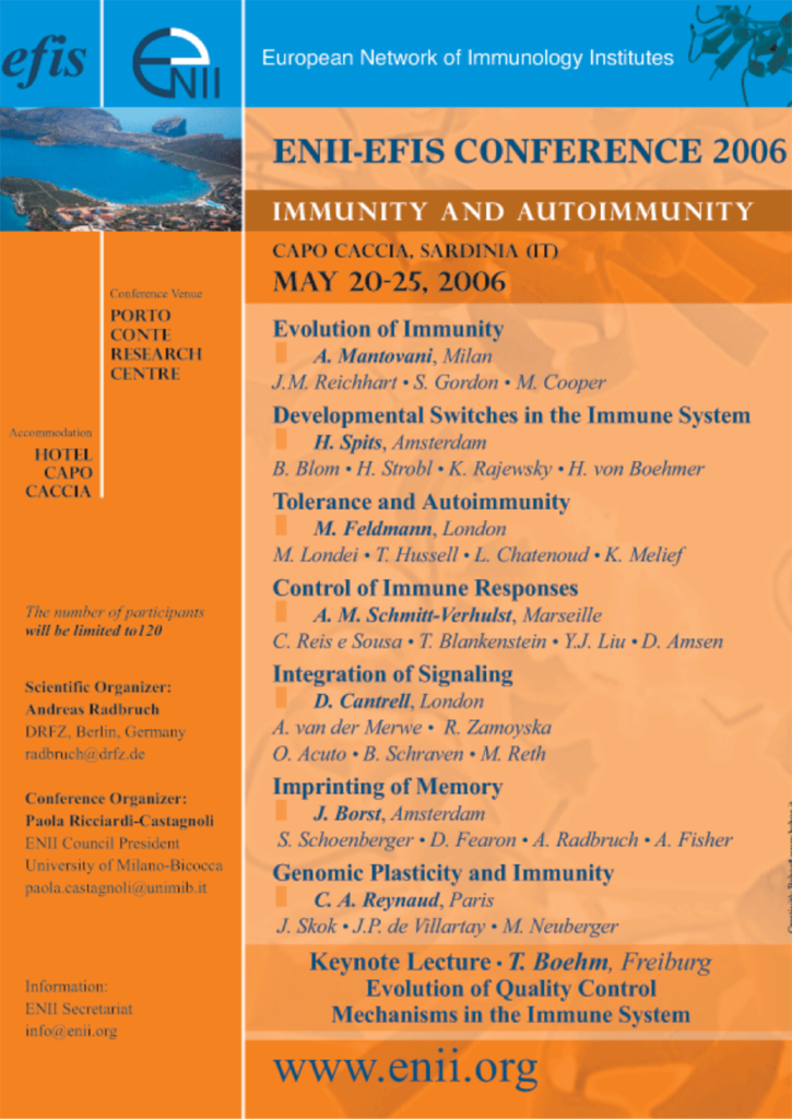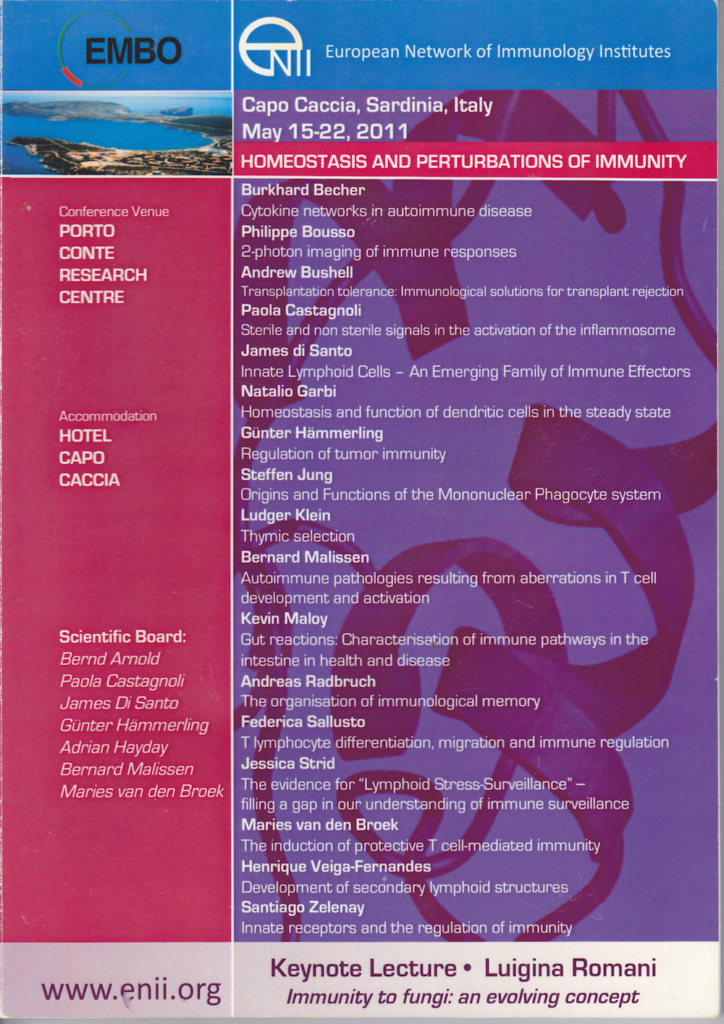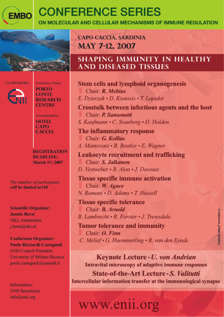 ENII has organized 21 annual workshops (1986-2006) and 3 EMBO Conferences (2007-2009-2011) on Molecular and Cellular Mechanisms of Immune Regulation.